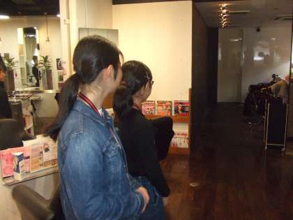 11月9日(木)2年生職業体験、1日目です。美容室で体験中。緊張した面持ちで一所懸命がんばっています。