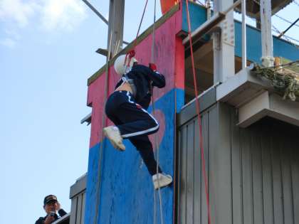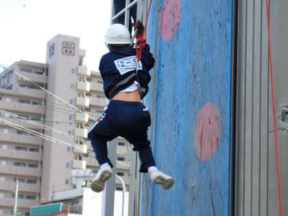 11月9日(木)2年生職業体験、1日目です。消防署でレスキュー隊の訓練を経験しています。