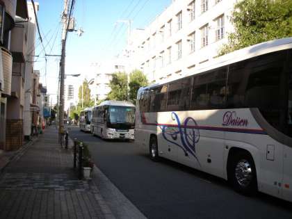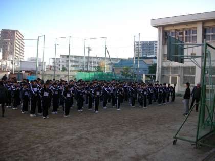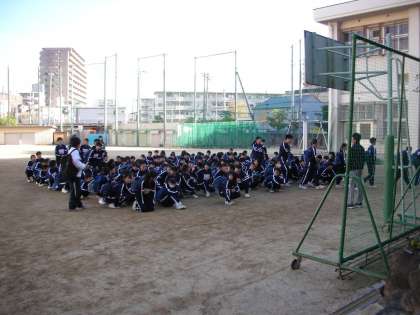 1年生は、いつもよりも少し早い集合です。8時15分に学校のグラウンドに集合しました。バス3台で奈良公園周辺に散策に出かけました。