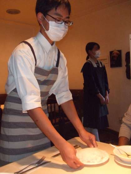 11月⒑日(金)2年生職業体験、2日目です。飲食店、洋食屋さんで頑張っています。