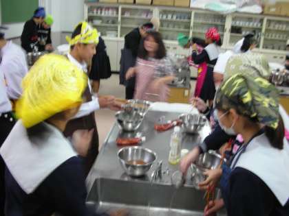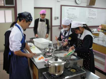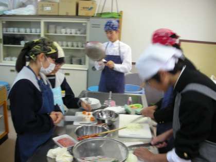 最初のうちは、包丁を使う手がぎこちなかったのですが、次第に慣れてきたようで、自分なりの方法で具材を切っていました。