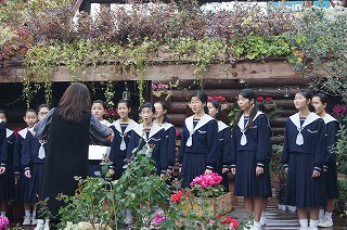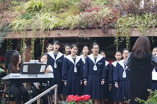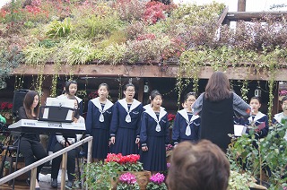 音楽部が『うめきたガーデン』で行われる花畑コンサートの出演することになっていましたが、「この雨でどうなるのだろうか」と、皆さんも心配されたのではないでしょうか。午後から、雨がやみ、時間が少し遅れましたが音楽部のステージが始まりました。