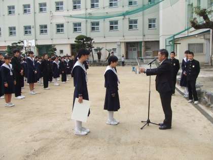 美術部の表彰がありました。第54回大阪府<歯の保健>図画ポスターコンクールにおいて、2名の生徒が表彰されました。しかも、「大阪市長賞」と「大阪府歯科医師会長賞」という立派な賞です。