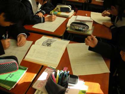 まず、各自が表現したい感情を短い文章で表現します。今度は、班を作って、各自の作品を読みあい、評価しあいます。各班の中で、良い評価を得た作品が披露されました。大きな拍手が起こりました。