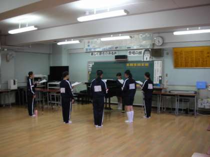 音楽部は、パート練習をしています。音楽室をはじめ、教室や廊下で一生懸命、練習に励んでいます。各パートが集まって、一つの歌を歌う時に、見事なハーモニーを奏でます。素晴らしいですね。