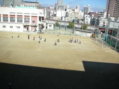 種目は、サッカーです。みんな楽しみながらも真剣にゴールを目ざしてプレーしています。