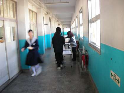 給食の人は、人気のびーふぃシチューのおかわりに、列ができていました。