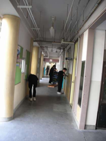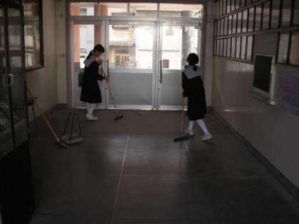 2学期最後の大清掃です。廊下を履いたり、窓を拭いたり、みんな一生懸命です。