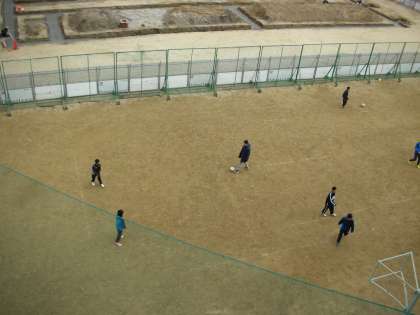 南館側に少しだけ、空きのスペースがあるので、サッカー部が練習をしています。