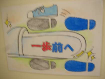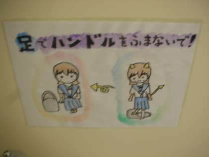 トイレの個室には、生徒たちが描いたポスターが掲示されています。とても温かいものを感じます。