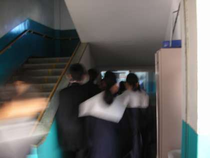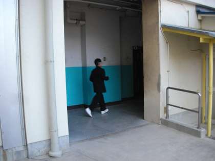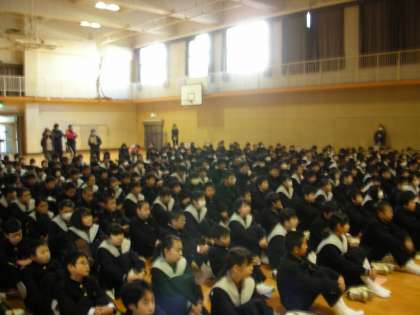 生徒たちは、階段、廊下を通って、体育館に避難しました。