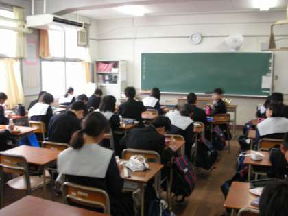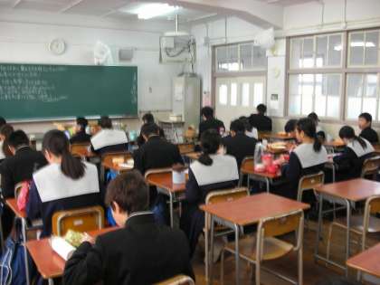 みんなおいしそうに食事をしています。給食について尋ねると、「おいしいです」と、ほとんどの生徒が感想を述べていました。カレーライスは、やはり人気メニューです。デリバリー方式の給食も味が安定してきたと思います。