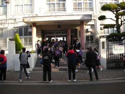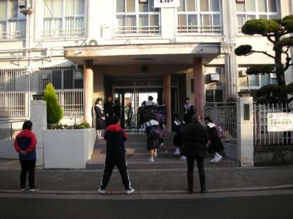 さて、正門玄関では、今日もあいさつ運動を行っています。風紀委員の人たちが大きな声で、「おはようございます」と声をかけ、登校してくる生徒を迎えています。気持ちの良い風景ですね。