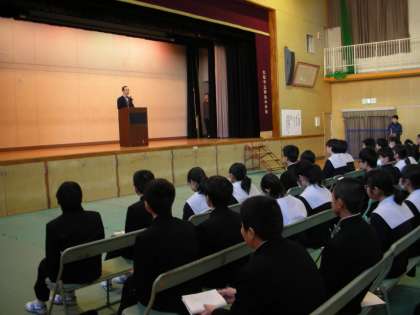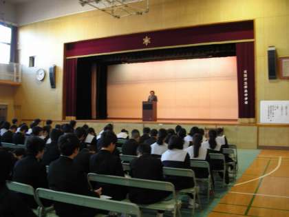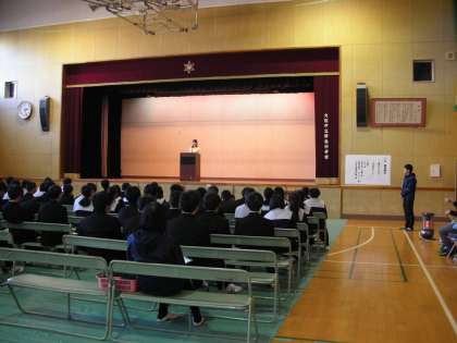 講師の方の中には、都島中学校出身の方もいらっさいました。すなわち、生徒の皆さんの先輩です。お話を聞いている内に、親近感がわいてきたようです。