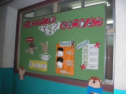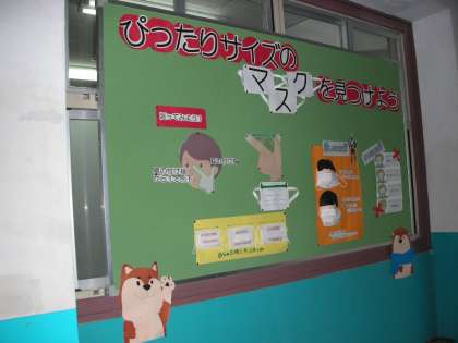 自分の顔のサイズに合わせてマスクを選ぶことが大切ですね。ぜひ、個の掲示物を見て、よりマスクの効果があがるものを身に付けたいですね。