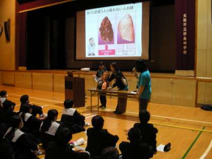 煙草を吸うと、たばこにがん細胞が増えていくという、怖いイメージの映像がありました。生徒にとっても「怖い!」と、感じた人が多かったようです。