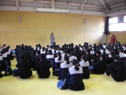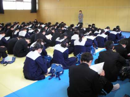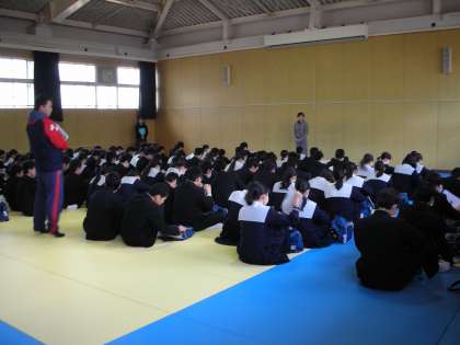 3年生は、私立高校を受験する人が願書を提出に行く日です。昼食後に、格技室に集まり、最終の書類点検をし、諸注意を受けて出発です。