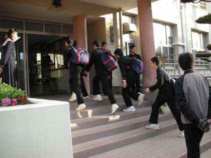 冷たく寒い朝ですが、生徒たちは元気に登校してきます。「おはようございます」「寒いですね」と、会話する生徒が多かったです。