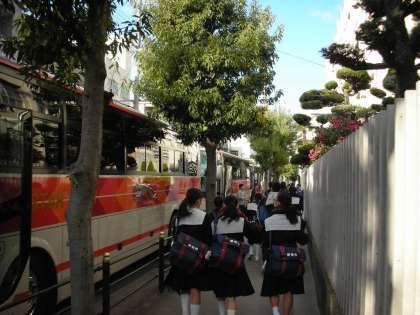 今日は、2年生が遠足に出かけます。他学年の生徒はバスを見て、「どこに行くのですか」と、質問する人もいました。
