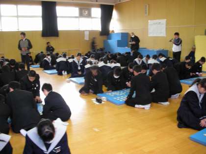 「はい」と、札をとると同じチームからは歓声が上がります。とられたチームからは「残念」と、落胆の声が聞こえます。