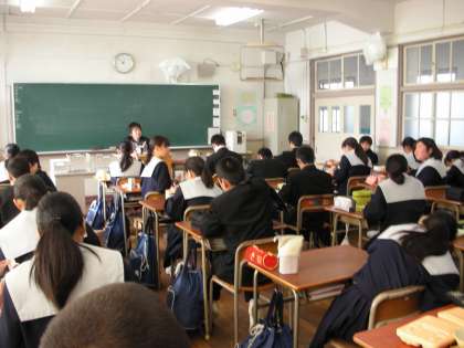 どのクラスも楽しそうに食べています。こちらから、「今日の給食はどうですか」と、尋ねる前に、「先生、おいしいですよ」と、答えてくれる人もいます。生徒たちが満足する給食が提供されると申し分ないですね。