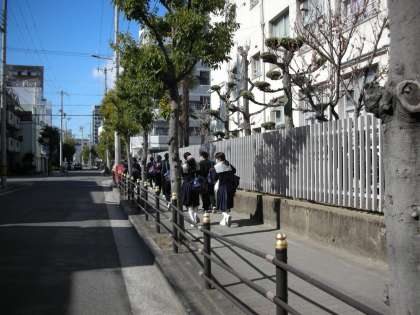 3年生の帰っていく様子を3年生の先生方が見守っています。心の中で、「明日も頑張れ!」と、呼びかけているようです。