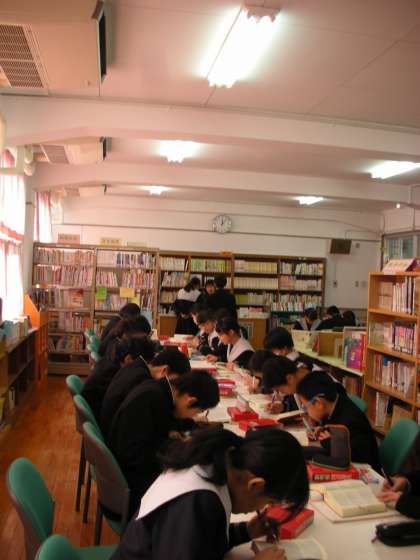 学校図書館をのぞくと、1年生の国語の授業をしていました。