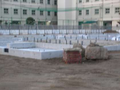 仮設校舎の工事現場では、パイプがたくさん立っています。果たして、このパイプはなんでしょうか?