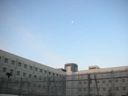 空を見上げると、夜が明けたけれども、お月様が輝いています。このような状態のお月様を【有明の月】と呼びます。面白い現象ですね。