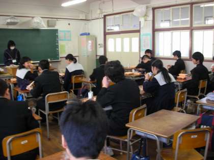 上から1組、2組です。食事中には、先生が楽しいお話をしてくださいます。クラスのメンバーは、そのお話に聞き入りながら、食事をしています。
