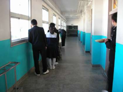 今日のメニューは、その香りからも「カレー」と、すぐにわかります。人気メニューです。お皿にご飯を移し替え、先生にカレーのルーを注いでもらいます。