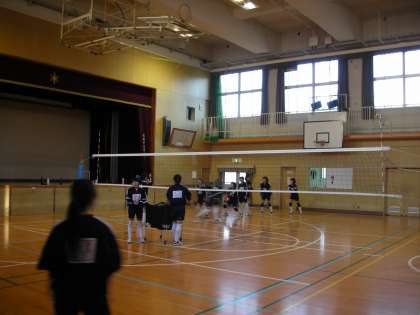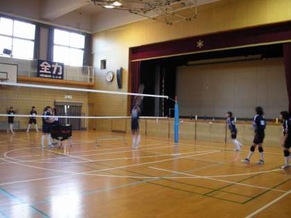 バレーボール部は、体育館で練習をしています。この季節の体育館は、とても寒いです。寒さを吹き飛ばすかのように、大きな声を出しています。【全力】で、頑張っています。