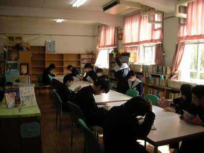 今日も学校図書館は、お昼休みの開館です。みんなおしゃべりをすることもなく、ひたすら、読書をしています。