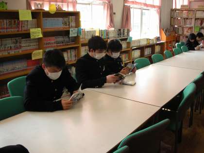 マスクをして、体調管理に努めている男子も一所懸命読書をしています。