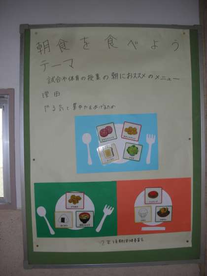 2年生は、『試合や体育の授業の朝におすすめのメニュー』で、サブテーマは、「やる気と集中力を高めるメニュー」です。