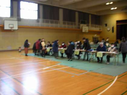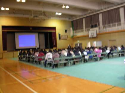 午後2時30分から体育館で『新入生保護者説明会』を行いました。入学予定の大勢の保護者の方が来られました。