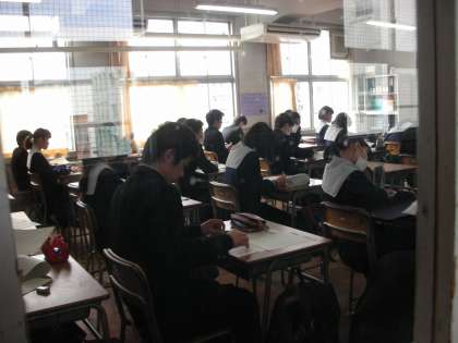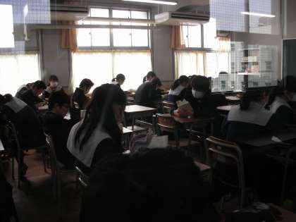 3年生は、各自の勉強に励んでいます。先生に質問をしたり、隣の人に教えてもらったりと、各自の課題解決に向けて取り組んでいます。