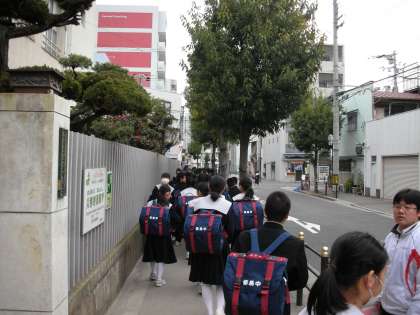 テスト中は、1,2年生とも一斉に下校します。先生も生徒の安全に気を付けながら、下校指導をしています。