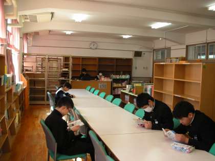 学校図書館のお昼の開館の様子です。今日も黙々と本を読んでいる人がいます。良いことだと思います。