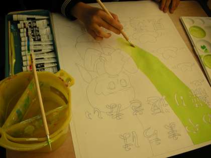 ある生徒は、ポスターを描いています。またある生徒は、レタリングをしています。取り組みは、人それぞれです。出来上がった作品を見るのが楽しみです。