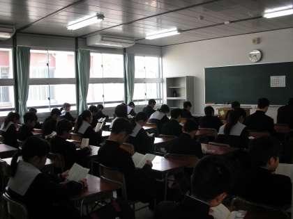 1年生は、登校後は教室に待機です。みんな本を読んでいるそうです。