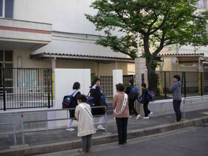 今日のあいさつ運動では、更生保護女性会の方が一緒に立ってくださいました。