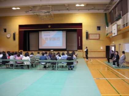 4月13日(金)に、体育館で修学旅行保護者説明会が行われました。その時の様子です。