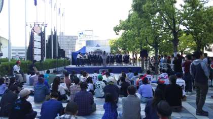 野外ステージで、お客様の前で三曲歌いました。歌うたいのバラツド、愛は勝つ、STORYです。観客の手拍子が入り、かなり盛り上がっていました。歌の発表が終わると、大きな拍手が起こりました。