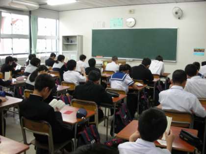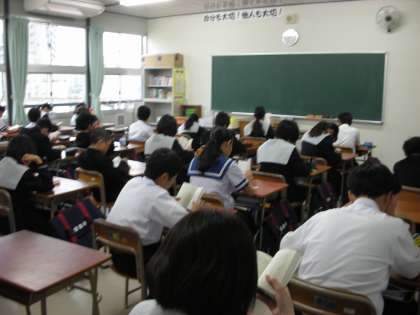 朝の学活で読書をしています。自分が読みたい本を家から持ってきます。心を静めて一生懸命読書をしています。