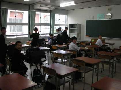 登校直後の教室の様子です。 みんな楽しそうにしています。