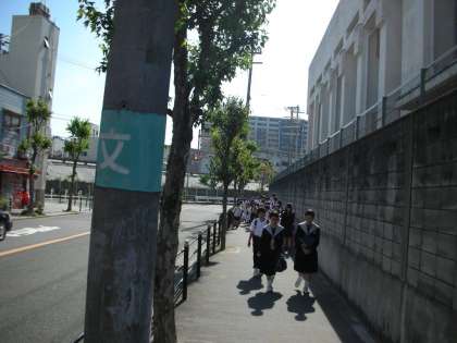 青空のもと、気持ちよさそうに登校してきます。試験前なので、表情に少しだけ厳しいものを感じました。