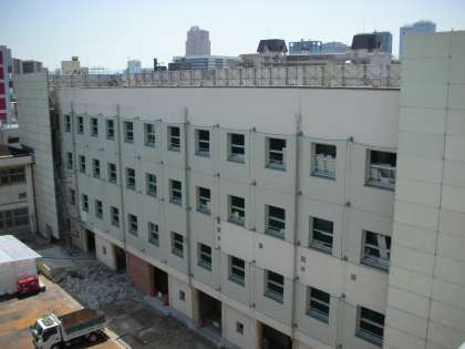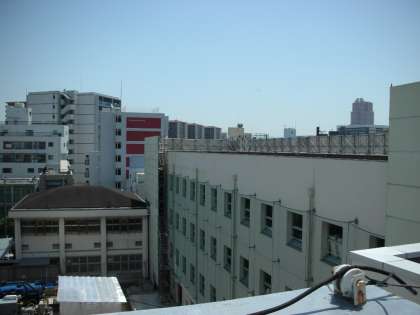 3年生の教室を回っていると、工事関係者が「西館の屋上に上がり、点検する」ということなので、一緒に屋上に上がりました。