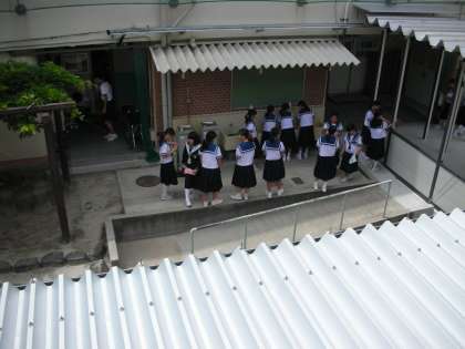 水道の周りに女子が集まっています。食事前に手を洗うために集まっているのです。『手を洗うこと』をきっちりと実践しているのは、良いことですね!