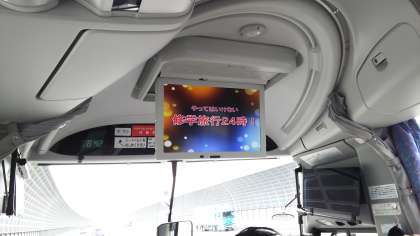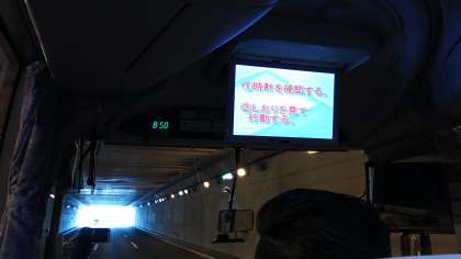 各バスの車内では、修学旅行実行委員会が作成したDVDを見ています。「笑ってはいけない」の都島中バージョンで、修学旅行の注意事項を楽しく示しています。実行委員会の人は、こんなに頑張ってくれていたのですね。ありがとう。